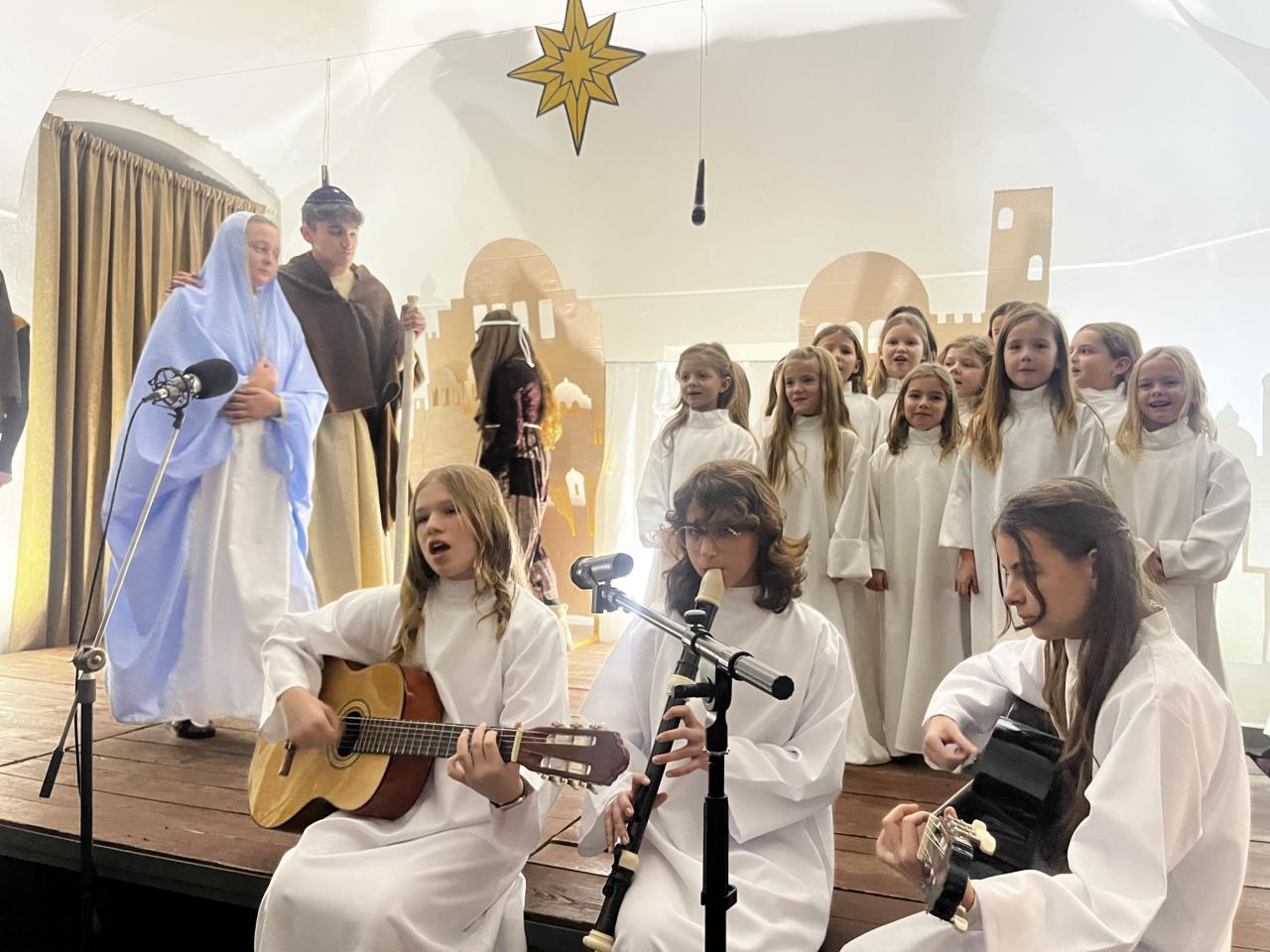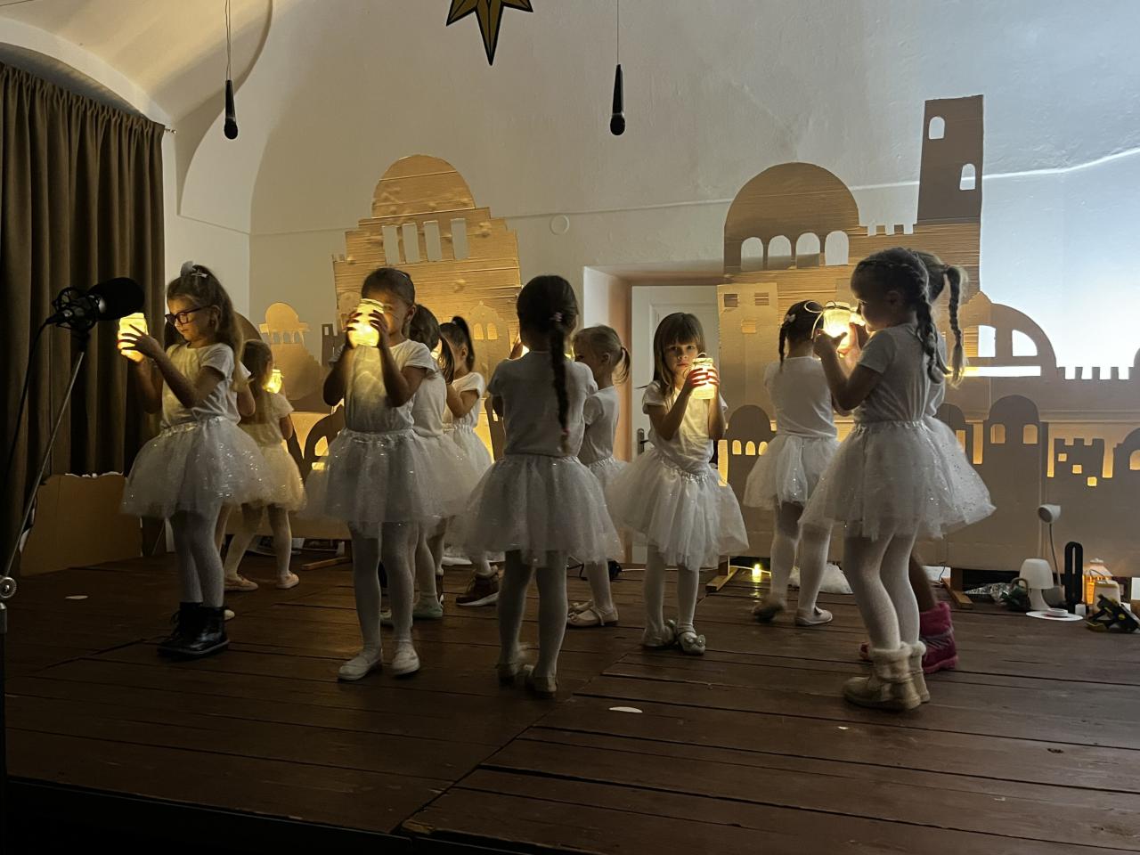 Žiaci z Cirkevnej základnej školy sv. Martina odohrali jedinečný príbeh plný udalostí okolo narodenia Ježiška v betlehemskej maštali. Svojich rodičov, starých rodičov a všetkých divákov naladili na predvianočnú atmosféru. Na pódiu sa predstavili aj deti navštevujúce tanečný odbor SZUŠ Altamira. Po prvý krát si prenos z predstavenia mohli pozrieť účastníci podujatia aj vonku pred kaštieľom, ktorý zabezpečila CZŠ sv. Martina. Súčasťou podujatia bola opäť burza vianočných dekorácií. Po skončení programu už na všetkých čakala kapustnica, vianočný punč a koledy v podaní Radačianky a Hájenky.