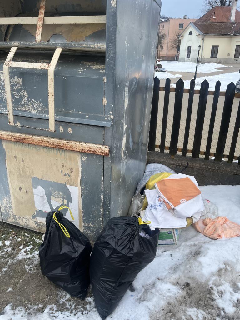 často krát je kontajner na textil prázdny, ale v jeho okolí to vyzerá ako na smetisku.